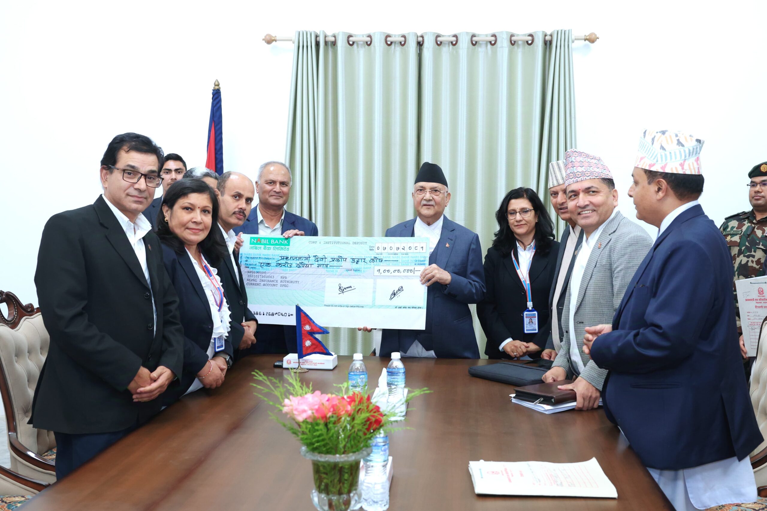 प्रधानमन्त्री ओलीलाई प्राधिकरणका अध्यक्ष सूर्य सिलवालले बिहीबार सिंहदरबारमा सोको चेक हस्तान्तरण गरेका छन् ।