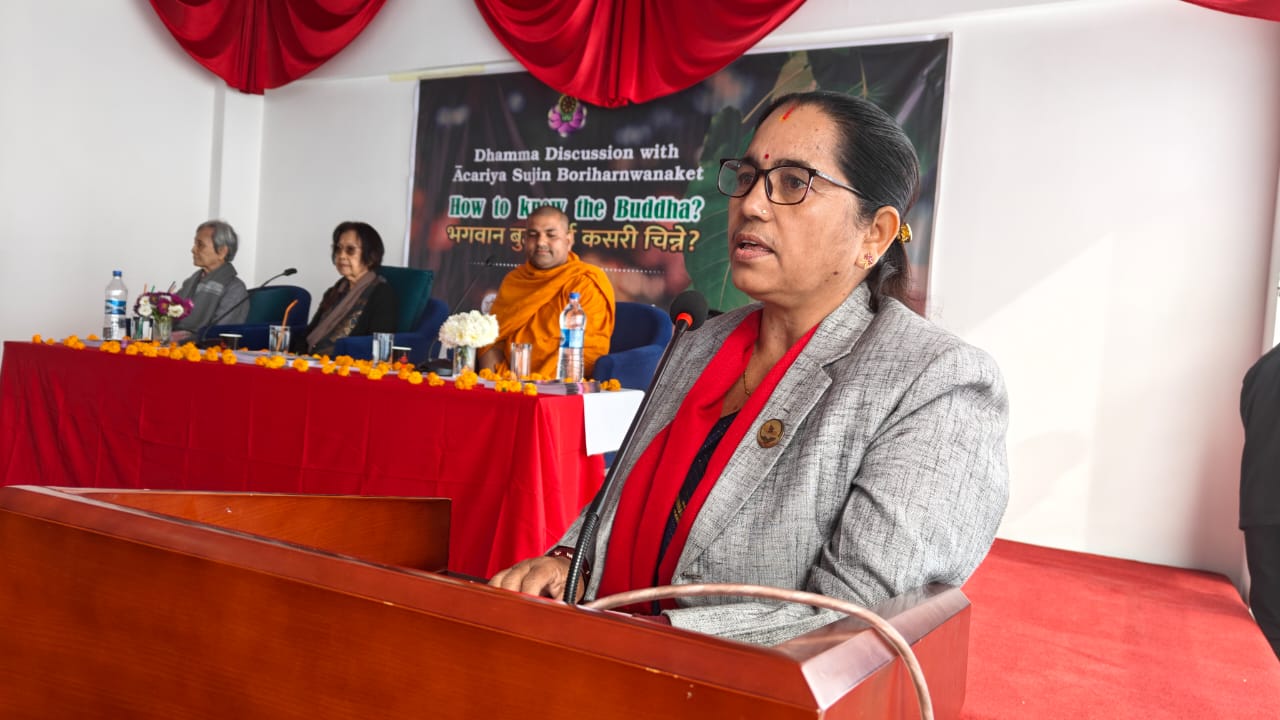 ‘विश्वको एक पवित्र भूमी मध्ये बुद्धको जन्मभूमि नेपाल रहँदै आएको तथ्य सर्व विदितै छ।’, उनले भनिन् ‘बुद्धले तय गरेका अष्ठमार्गको आधारमा हाम्रो समाजको विकासक्रम अघि बढिरहेको छ भने बुद्धले पहिल्याउनु भएको ४ आर्य सत्यलाई पछ्याउन सकियो भने संसारबाट दुःख निवारण हुन्थ्यो होला। जो आज पारस्पारिक हित र बहुपक्षीय सहसम्बन्धको लागि अपरिहार्य सेतु बनेको छ ।’
