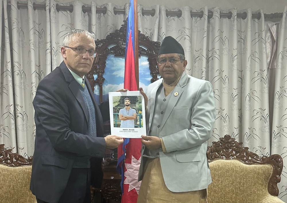नेपालका लागि इजरायलका राजदूत खनान गोडेरसँग आज आफ्नै कार्यकक्षमा भएको भेटमा उनले निर्दोष जोशीको रिहाइका निम्ति अनुरोध गरेका हुन्।