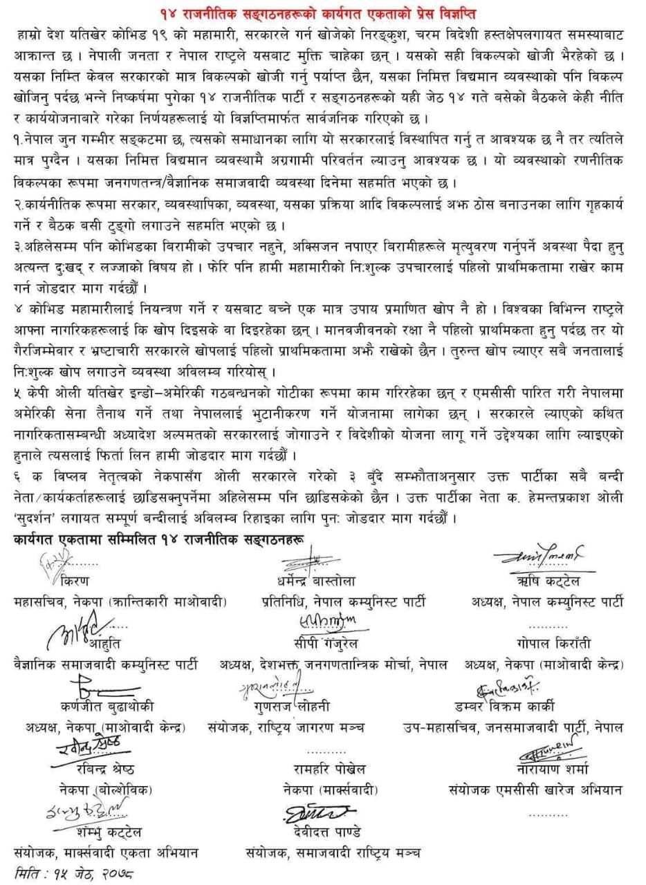 ‘अल्पमतको सरकारलाई जोगाउने र विदेशी योजना लागू गर्ने उद्देश्यका लागि ल्याइएको हुनाले त्यसलाई फिर्ता लिन हामी जोडदार माग गर्दछौँ,’ विज्ञप्तिमा भनिएको छ ।