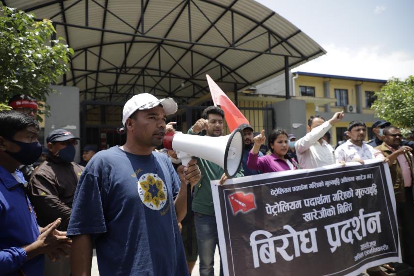 त्रिपुरेश्वरबाट पेट्रोलियम पदार्थमा गरिएको मूल्यवृद्धिको विरुद्धमा र्यालीसहित आयल निगम केन्द्रीय कार्यालयमा पुगेर धर्ना दिइएको हो । सरकारले आइतबार रातिबाट लागु हुने गरी पेट्रोल र डिजेलमा प्रतिलिटर १०/१० रुपैयाँ र खाना पकाउने एलपी ग्यासमा प्रतिसिलिन्डरमा २०० रुपैयाँले मूल्य बढाएको छ ।
