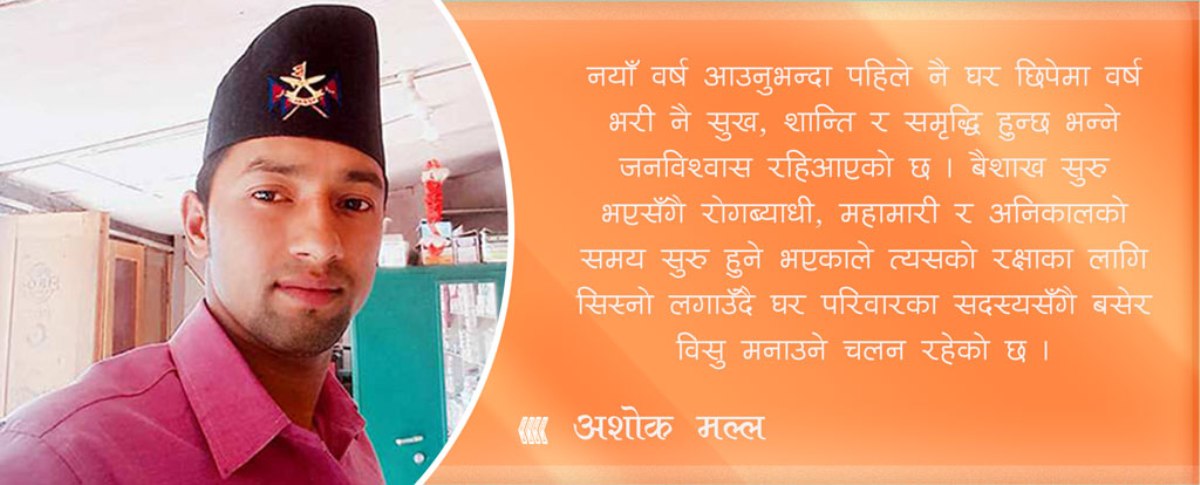 विसु तिहारकै दिन कूलदेवताको पूजा गरी ‘गतानी डुब्का’ (स्थानीय खानाको परिकार) पकाई खाने चलन छ । हिन्दु सम्राट विक्रमादित्यको पराक्रम र जन्मोत्सवको खुसीयाली स्वरुप पौराणिककालदेखि नै यो पर्व मनाउने गरिएको विश्वास गरिन्छ ।