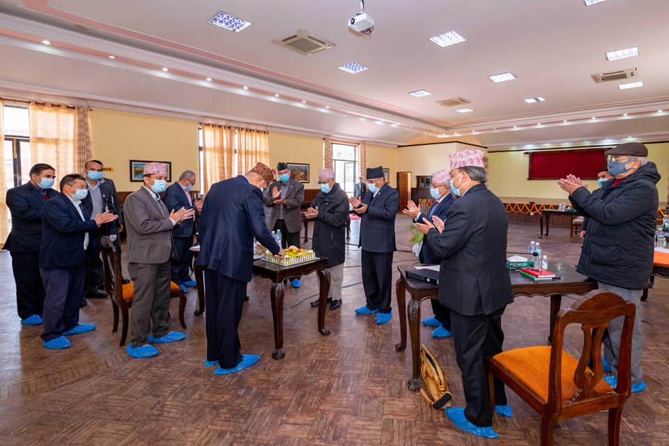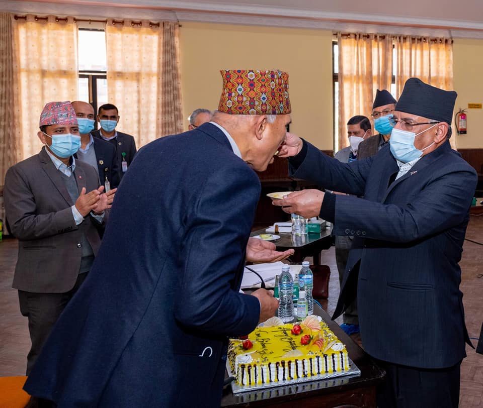 बैठकको शुरुमा महासचिव एवं अर्थमन्त्री विष्णुप्रसाद पौडेललाई ६२ औँ जन्मोत्सवका अवसरमा शुभकामनासहित केक काटी प्रधानमन्त्री एवं पार्टीका ओली,अध्यक्ष दाहालसहितका नेताहरुले शुभकामना दिनुभएको प्रधानमन्त्रीका प्रेस सल्लाहकार सूर्य थापाले जानकारी दिए ।