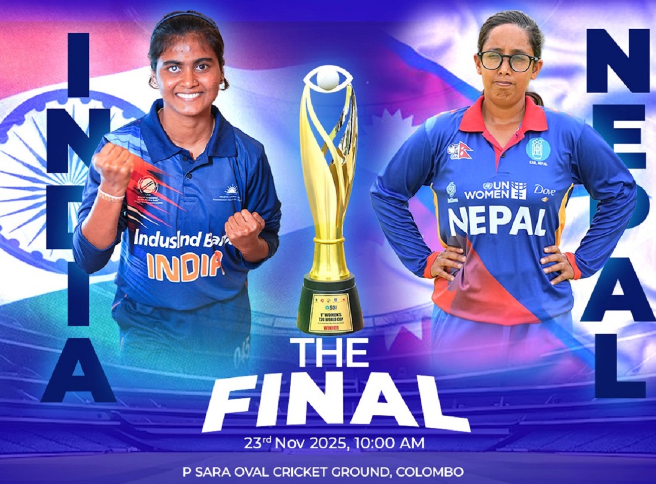 नेपालले उपाधिका लागि आइतबार भारतसँग खेल्नेछ । फाइनल खेल आइतबार बिहान १० बजे श्रीलंकाको कोलम्बोस्थित सारा क्रिकेट मैदानमा सुरु हुँदैछ। प्रतियोगितामा नेपाल र भारत एकपटक भिडिसकेका छन् ।