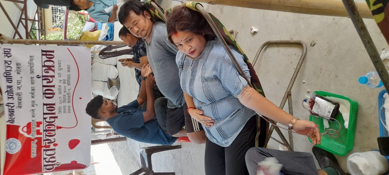 बेलबारी उद्योग वाणिज्य संघका अध्यक्ष भेषकुमार श्रेष्ठले रगत अभाव पूर्ति गर्न आफूहरूले पनि रक्तदान कार्यक्रम आयोजना गरिरहेको बताए । उनले शुक्रबार पनि रक्तदान कार्यक्रम आयोजना गरी ५५ युनिट रगत संकलन गरिएको जानकारी दिए ।