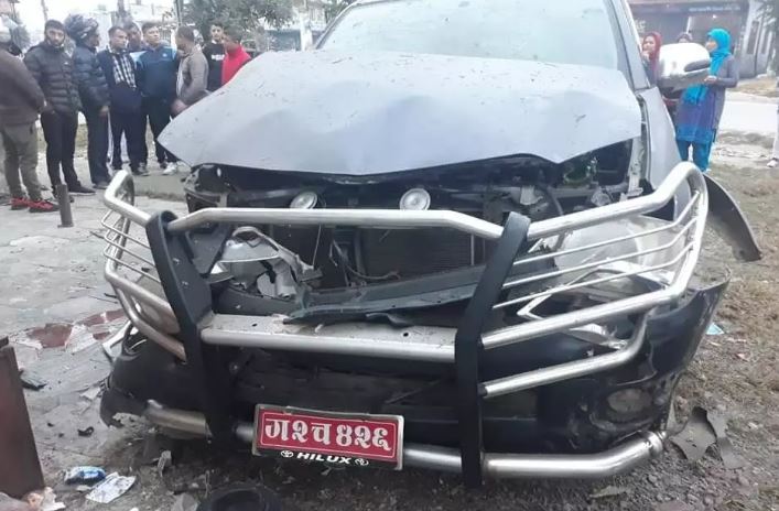 वडाध्यक्ष आचार्य चढ्ने ग २ च ४२६ नम्बरको हाइलक्स गाडीमा सोमबार बिहान २ः४५ बजे बम विष्फोट भएको घटनास्थलमा पुगेका गण्डकी प्रहरी प्रदेश कार्यालयका प्रमुख विनोद शर्मा घिमिरेले जानकारी दिए ।