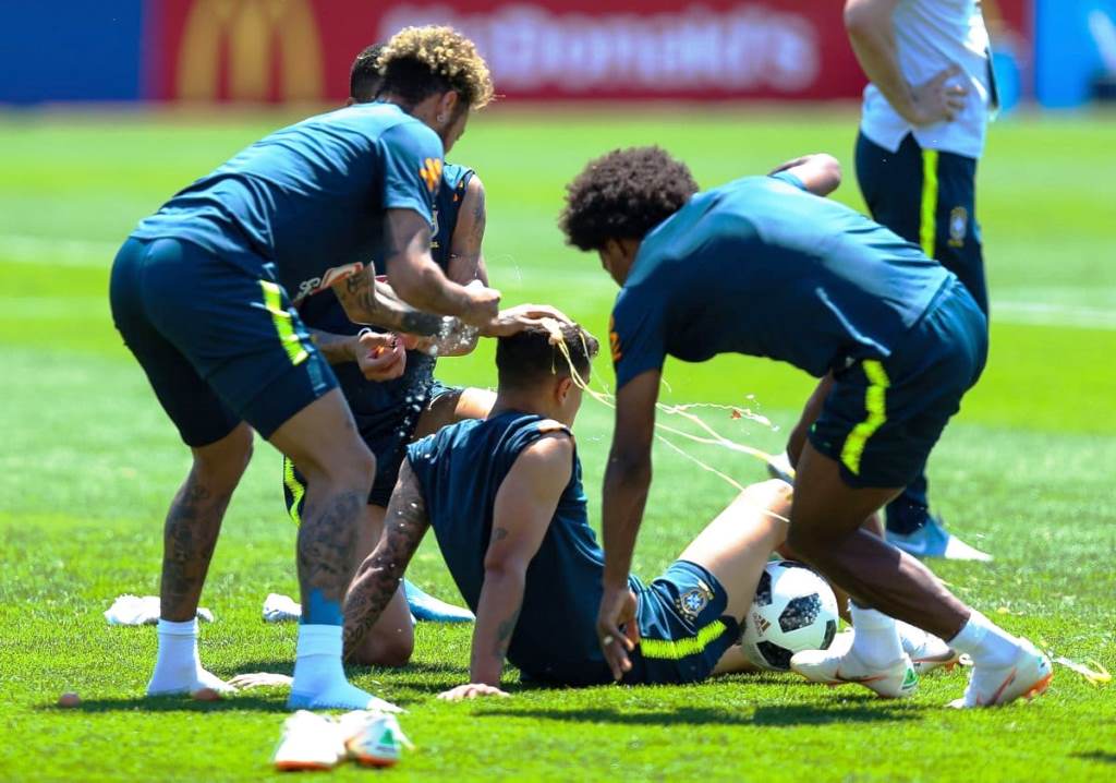 त्यसपछि पालो आयो नेइमारको । नेइमारका दुवै हात मार्सेलोले समाते अर्का खेलाडीले आएर उनको टाउकोमा अण्डा फुटाए । रमाइलो गरे । ब्राजिलियन टोली रुसमा रामाइलो गर्दै प्रशिक्षणमा छ ।विश्वकपका लागि समूह ई मा रहेको ब्राजिलले आफ्नो पहिलो खेलमा जुन १७ मा स्वीट्जरल्याण्डसँग खेल्नेछ ।