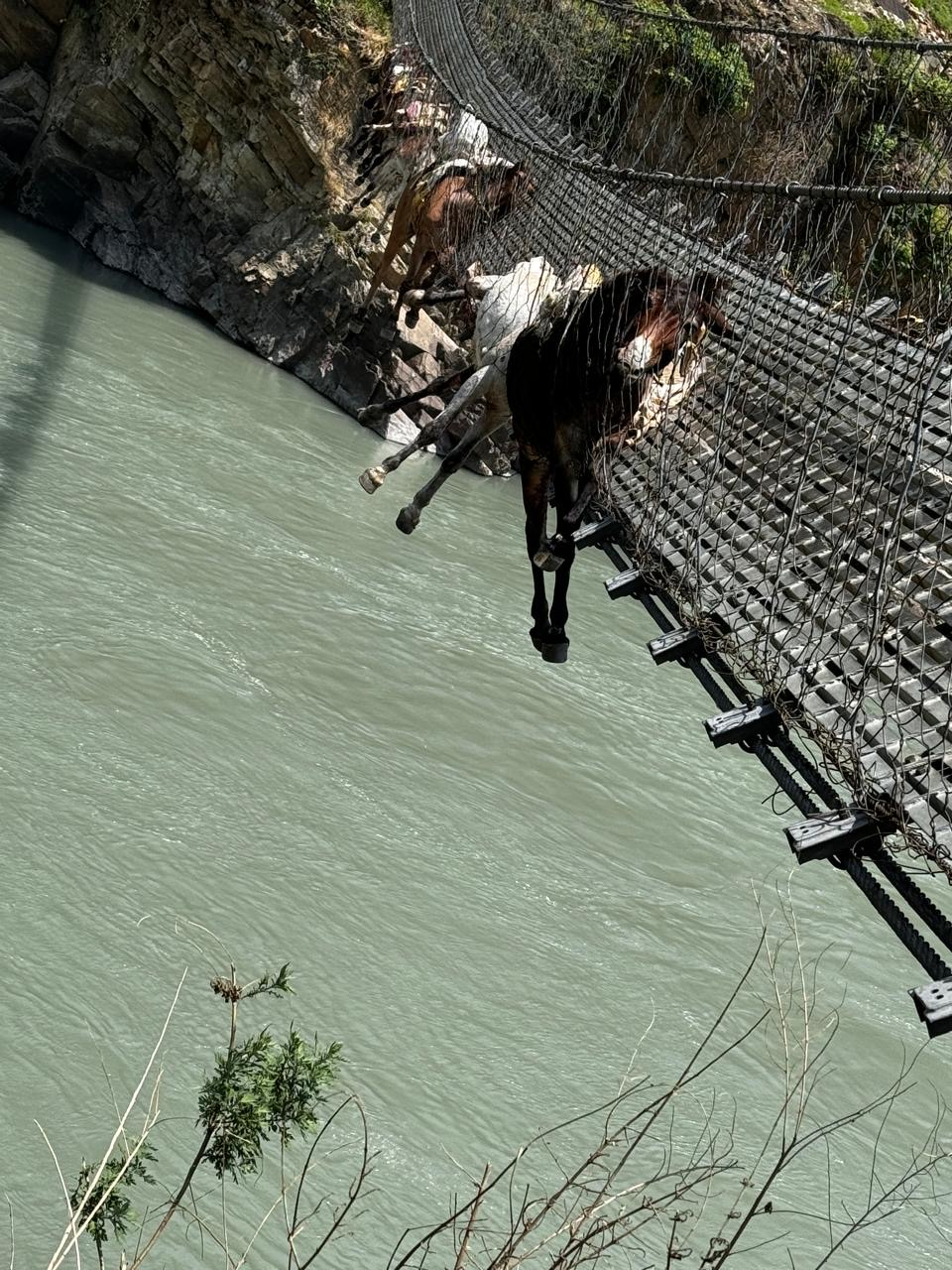 अछामबाट दैलेख आउने क्रममा बिहान पुलको लट्ठा चुँडिदा खच्चड फसेका थिए । पुलबाटै उद्धार सम्भव नभएपछि तार काटेर कर्णालीमा खसालिर्एको थियो । पुलबाट खसालिएका खच्चडलाई नदीमा डुंगाबाट उद्धार गरिएको थियो ।