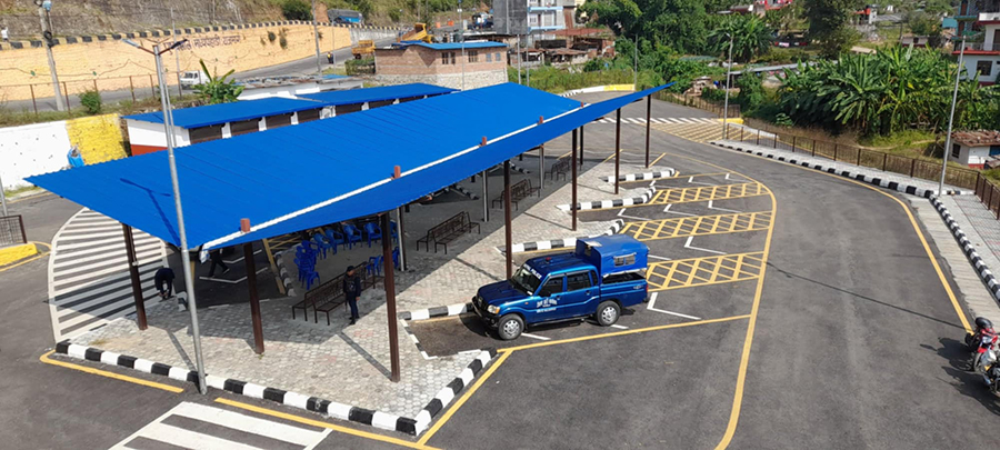 बाह्र रोपनीमा फैलिएको बसपार्कमा यात्रीकक्ष र पसल कबल, टिकट बिक्रीकक्ष, चमेनागृह, हलुका तथा भारी सवारीसाधन राख्ने संरचना छन् ।