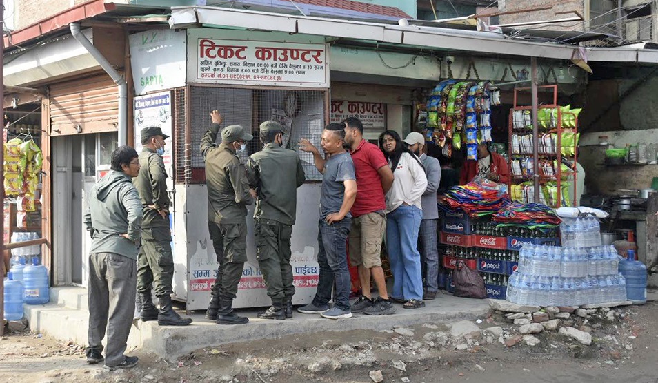 महानगरले आज बिहानैदेखि चक्रपथ क्षेत्रमा अव्यवस्थितरुपमा सञ्चालित टिकट काउण्टर हटाएको छ । कामपाका प्रहरी प्रमुख राजुनाथ पाण्डेले गोङ्गबु, कलङ्की क्षेत्रमा अव्यवस्थितरुपमा राखिएका टिकट काउण्टर हटाइएको जानकारी दिए ।