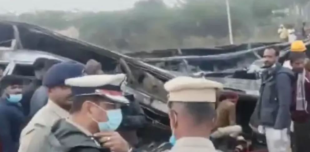 चित्रदुर्ग जिल्लामा बिहीबार बिहान स्लीपर बस विपरीत दिशाबाट आउँदै गरेको इन्धन बोकेको ट्याङ्करसँग ठोक्किएपछि आगलागी हुँदा कम्तीमा ११ जनाको मृत्यु भएको हो ।