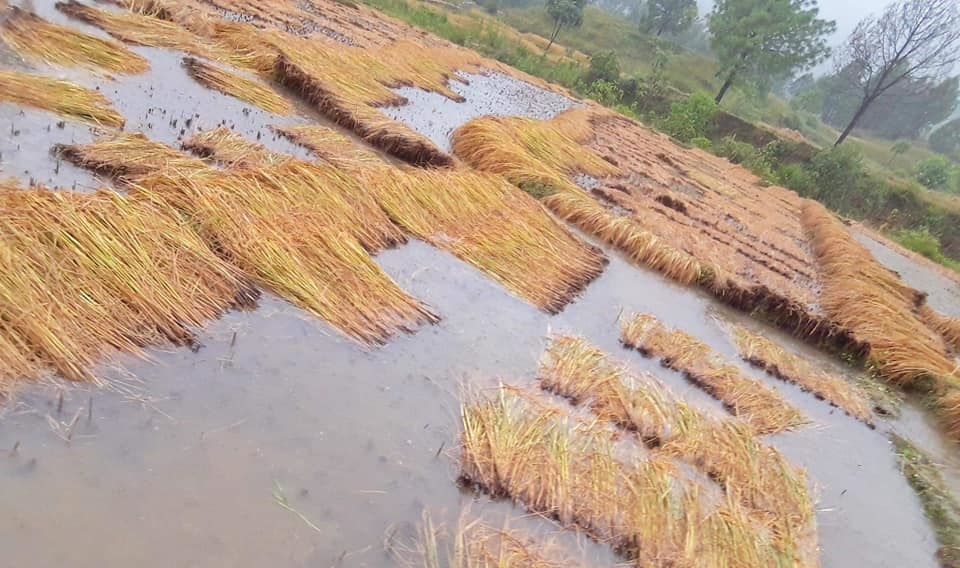 धान उत्पादनको पकेट क्षेत्र मानिने रुपन्देहीको दक्षिण क्षेत्रमा बिशेषगरी गोरखनाथ, राधा–४, सर्जु–५२ जातका धान लगाएका किसानहरूका खेतमा धान पाकिसकेको थियो । रुपन्देहीको देवदह, ओमसतिया, सियारी, शुद्धोधन, मर्चवारी, सम्मरीमाई, कोटइमाईलगायतका स्थानीय तहमा धान काटिसकेको हुनाले धान खेतमै डुबेको छ । थोरैले मात्र उठाउन भ्याएका छन् ।