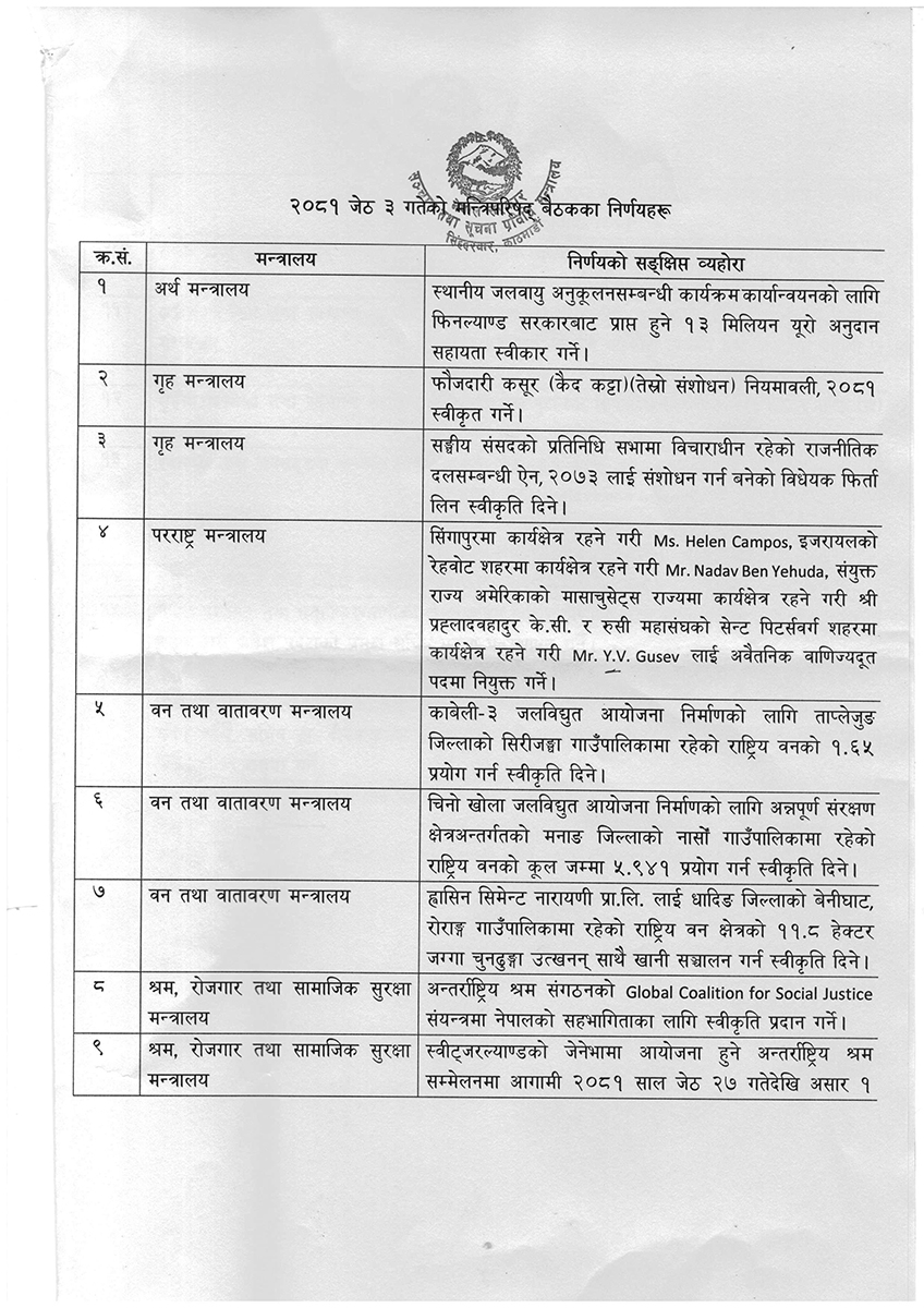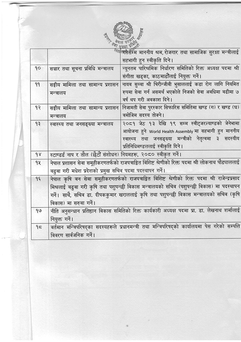 प्रधानमन्त्री र मन्त्रीहरूको सम्पत्ति विवरण सार्वजनिक गरिने, यी हुन् सरकारका १८ निर्णय