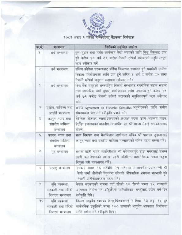 विश्व बैंकबाट प्राप्त सहुलियतपूर्ण ऋण स्वीकार गर्ने सरकारको निर्णय