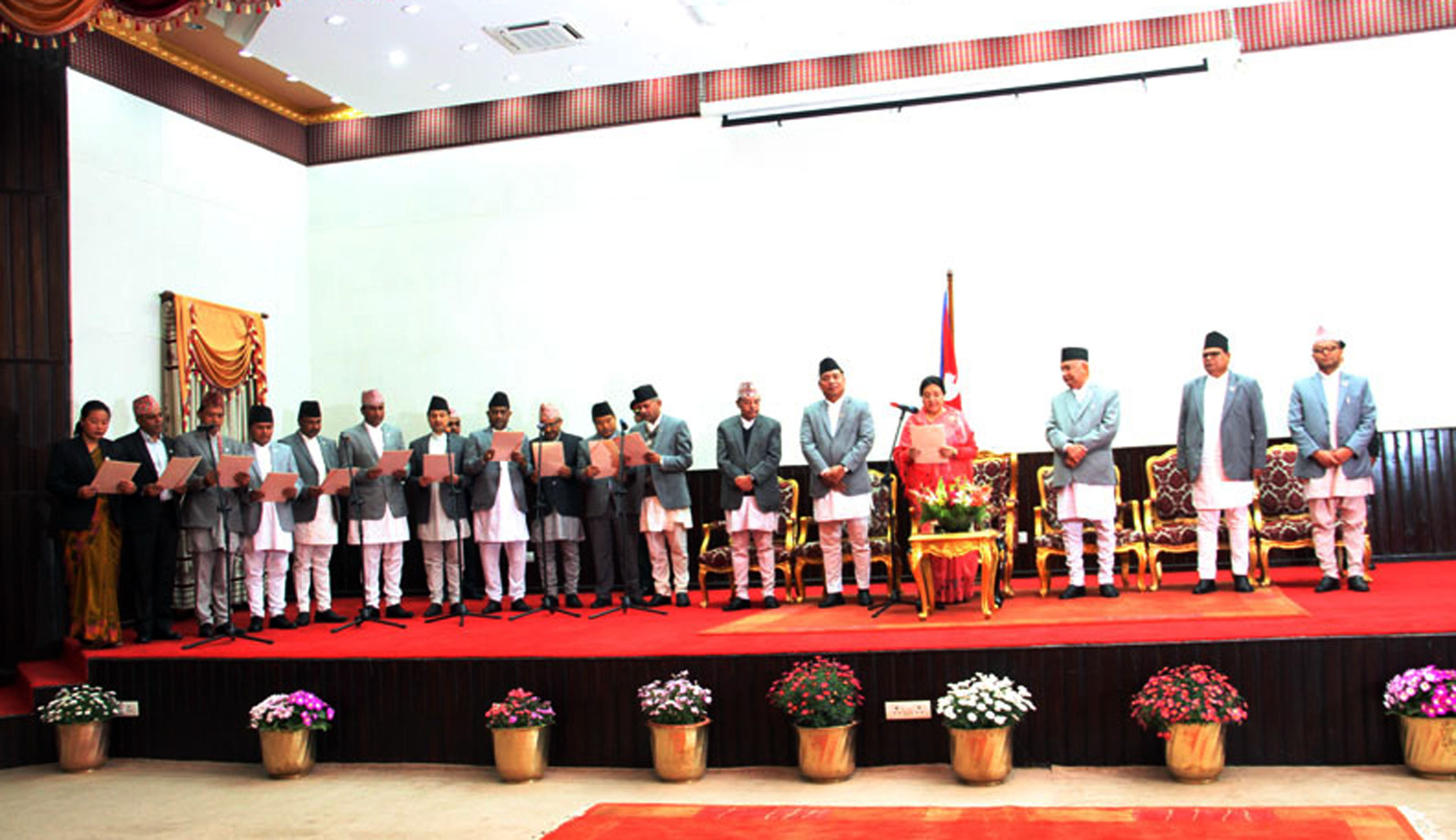 यसैबीच, नवनियुक्त मन्त्रीहरुले शुक्रबार नै राष्ट्रपति विद्यादेवी भण्डारीले समक्ष पद तथा गोपनियताको शपथग्रहण गरेका छन्।