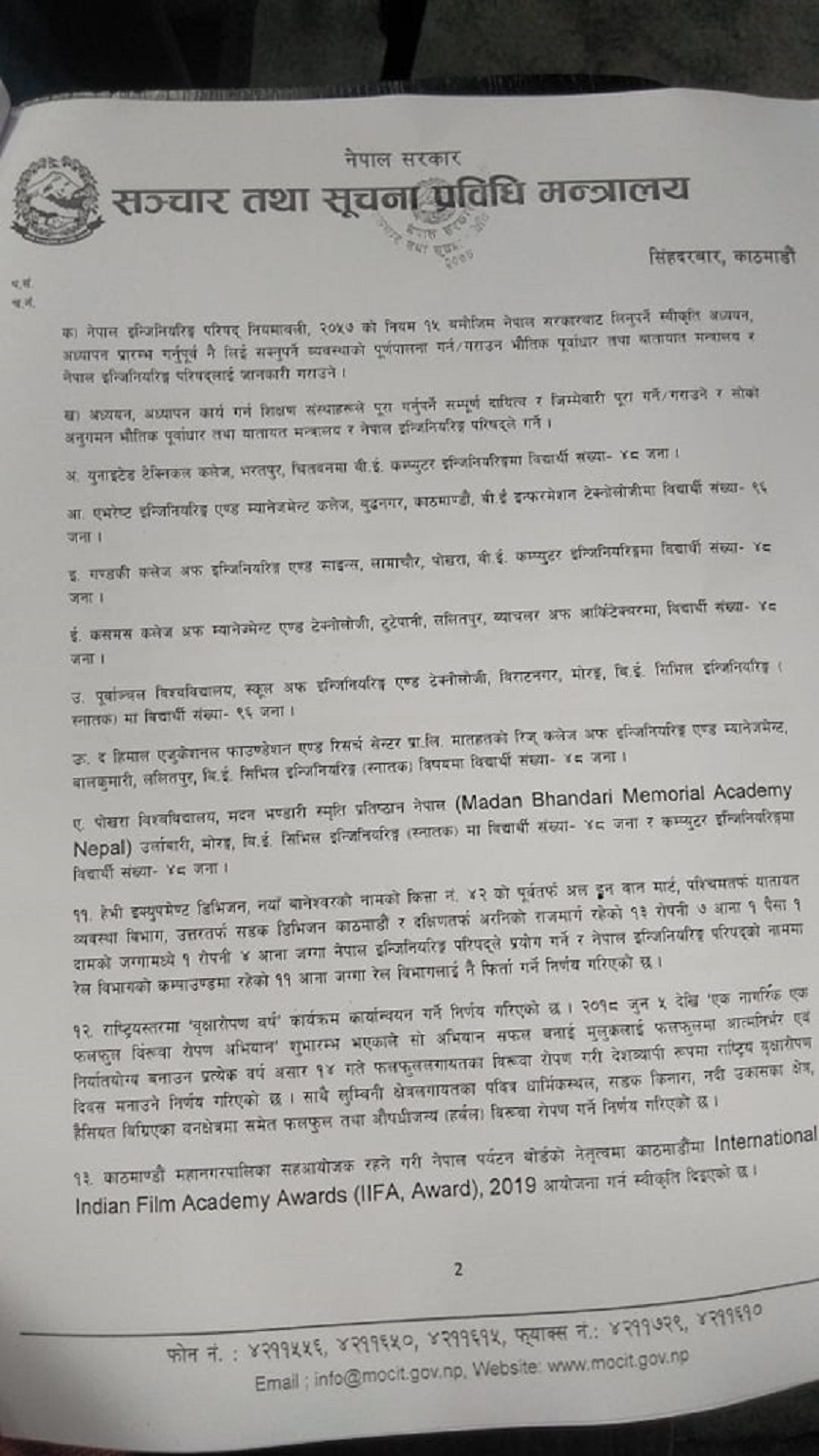 यस्ता छन् मन्त्रिपरिषद् बैठकका २० निर्णयहरु –