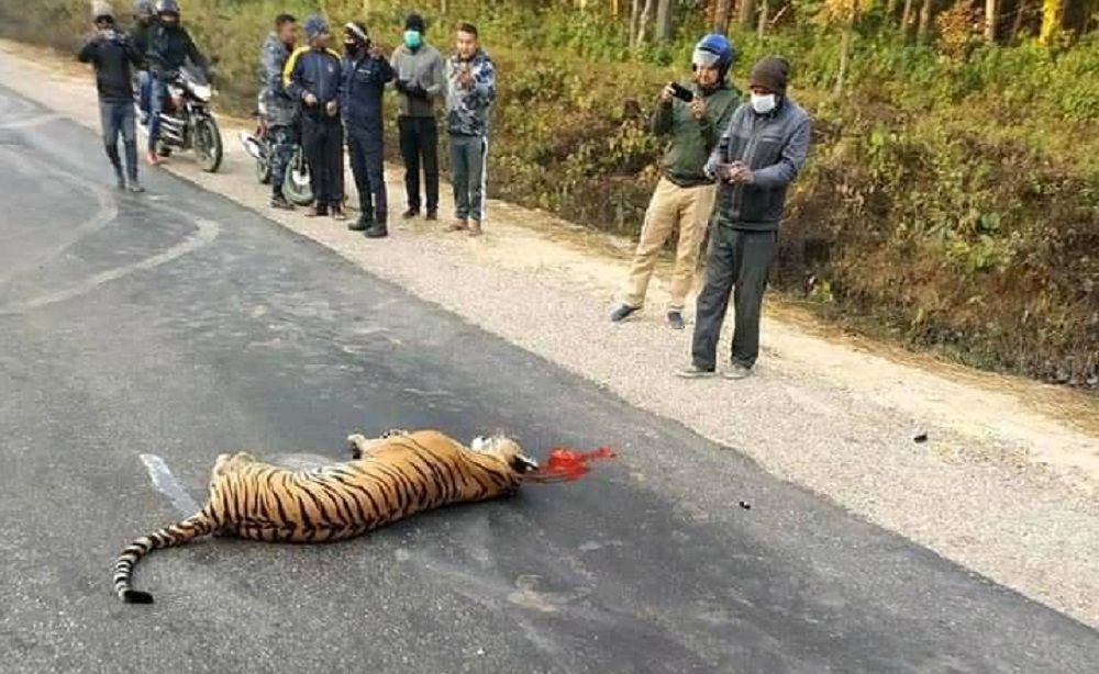 कारको ठक्करबाट १० वर्षको पाटे बाघको मृत्यु भएको बारा प्रहरीले जनाएको छ । प्रहरीले कार चालक सर्लाहीका वर्षीय अजय मिश्र र बाघलाई राष्ट्रिय निकुञ्जको जिम्मा लगाएको छ ।