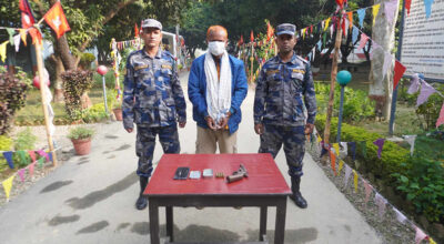 काठमाण्डु – नक्कली नोटको कारोबारमा संलग्न रहेको आरोपमा प्रहरीले भक्तपुरबाट सुनचाँदी पसल सञ्चालकलाई पक्राउ गरेको छ । भक्तपुरको सूर्यविनायक नगरपालिका–८ सिपाडोलस्थित ईन्द्र ज्वेलर्स सुनचाँदी पसलका सञ्चालक भक्तपुर नगरपालिका–७ बस्ने ३० वर्षीय सोहिल शाक्यलाई मंगलबार प्रहरीले पक्राउ गरेको छ । काठमाण्डु उपत्यकाका विभिन्न स्थानहरूमा नेपाल राष्ट्र बैंकबाट जारी गरेको नेपाली १ हजार र ५०० दरका नोट…