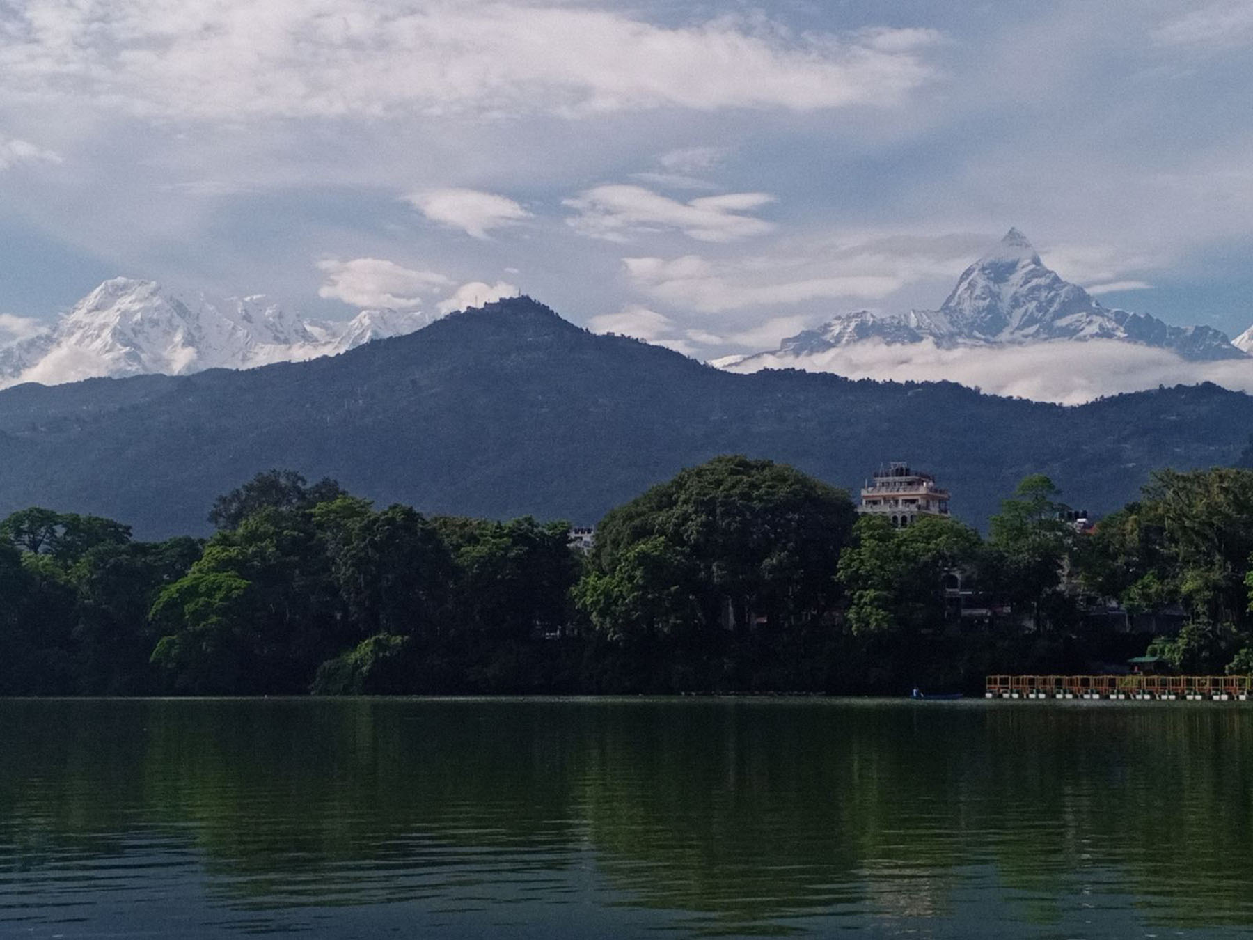 पोखरा – पोखराको प्रसिद्ध फेवातालको बीचबाट देखिएको माछापुच्छ्रे हिमालको सुन्दर दृश्य । तस्वीर : जमुना वर्षा शर्मा, रासस