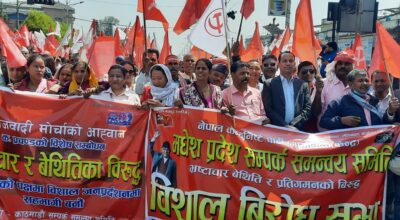 काठमाण्डु– नेपाल मेडिकल कलेज जोरपाटीका आवासीय डाक्टरहरू सडकमा उत्रिएका छन् । सरकारले तोकेअनुसार न्यूनतम पारिश्रमिक नपाएको भन्दै उनीहरुले माइतीघरमा प्रदर्शन गरेका हुन् । उनीहरूले ‘स्वास्थ्य शिक्षा माथिको चरम व्यापारीकरण नियन्त्रण गर’, ‘पीजी सिटको कालोबजारी बन्द गर’, स्वास्थ्य शिक्षामाथि राजनीति बन्द गर, आवासीय चिकित्सकमाथिको श्रम शोषण बन्द गर, लगायतका प्लेकार्ड बोकेर प्रदर्शन गरिरहेका छन् । सरकारले…