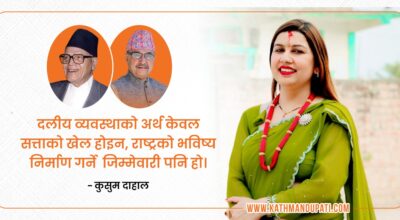 काठमाण्डु - भदौ २३ र २४ गते जेन–जी आन्दोलनका क्रममा आगजनी र तोडफोडपछि ध्वस्त संसद भवनको पूर्वराष्ट्रपति विद्यादेवी भण्डारीले अवलोकन गरेकी छन् । जेन–जीको आगजनीबाट खण्डहर बनेको भवन अवलोकनका लागि भण्डारी बिहीबार संसद भवन पुगेकी हुन् । उनले सङ्घीय संसद्को प्रतिनिधि सभा र राष्ट्रिय सभाको बैठक बस्ने हल लगायतका क्षेत्रहरूको अवलोकन गरेकी थिइन्। यसअघि उनले…