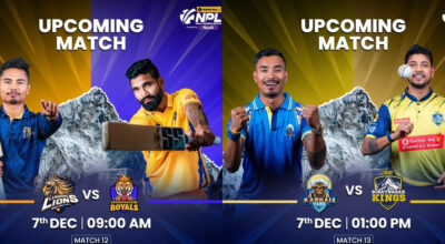 काठमाण्डु- नेपाल प्रिमियर लिग (एनपीएल)को तेह्रऔं खेलमा कर्णाली याक्सले जित निकालेको छ । कर्णालीले विराटनगरलाई ७ रनले हराएको हो । टीयु क्रिकेट मैदानमा कर्णालीले दिएको १३४ रनको लक्ष्य पछ्याएको विराटनगरले २० ओभरमा ८ विकेट गुमाएर १२६ रन मात्र बनायो । विराटनगरका लागि निकोलश किर्तनले सर्वाधिक ४० रन जोडे भने ओपनर लोकेश बमले १९ रन र…