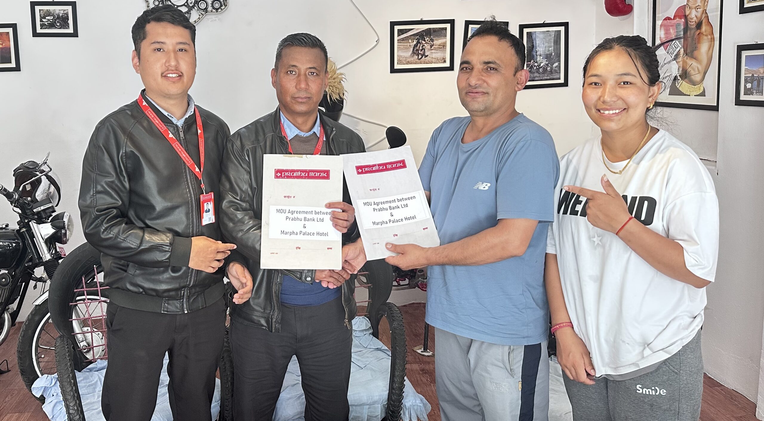 काठमाण्डु– प्रभु बैंक लिमिटेड र घरपझोङ गाउँपालिका वडा–२मा रहेको मार्फा प्यालेस होटलबीच सम्झौता भएको छ । प्रभु बैंक र मार्फा होटलबीच आफ्ना कर्मचारी र ग्राहकहरुलाई बिशेष छुट प्रदान गर्ने सम्झौता भएको हो । मार्फा प्यालेस होटलका तर्फबाट केशव रिजाल र प्रभु बैंक लिमिटेड तर्फबाट जोमसोम क्ल्स्टर प्रमुख तथा जोमसोम शाखाका शाखा प्रबन्धक नरेन्द्र थकालीले समझदारी…