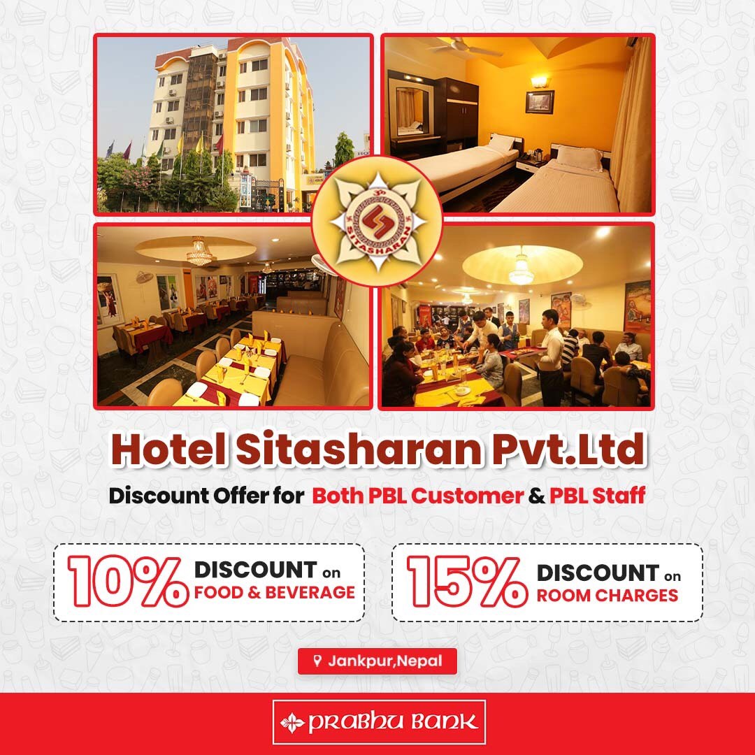 काठमाण्डु - प्रभु बैंक लिमिटेड र जनकपुर स्थित होटल सिताशरण प्रालिबिच विभिन्न सेवाहरुमा छुट प्रदान गर्ने सम्बन्धी सम्झौता सम्पन्न भएको छ । मंगलबार प्रभु बैंक लिमिटेड र जनकपुर स्थित होटल सिताशरण प्रालिबिच विभिन्न सेवाहरुमा छुट प्रदान गर्ने सम्बन्धी सम्झौता सम्पन्न भएको हो । बैंकका तर्फबाटजनकपुर शाखा कार्यालय प्रमुख अशोक कुमार साहर होटल सिताशरण प्रालिका तर्फबाट…