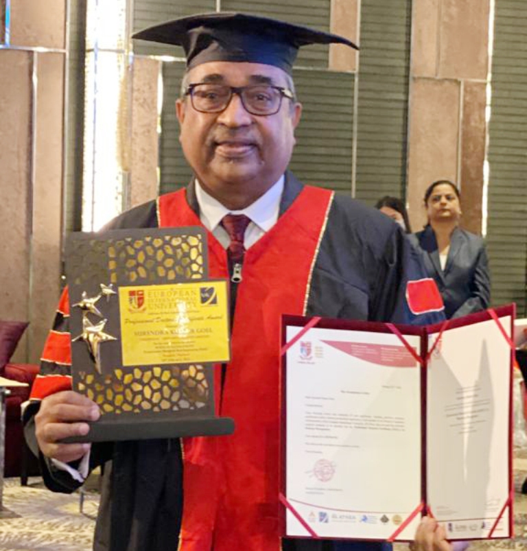 काठमाण्डु - शिवम् सिमेन्टका कार्यकारी अध्यक्ष डा. सुरेन्द्र कुमार गोयललाई यूरोपियन इन्टरनेशनल यूनिभर्सिटी पेरिस, फ्रान्सद्वारा प्रोफेसनल डक्टरल सर्टिफिकेट इन बिजनेस म्यानेजमेन्ट (विद्यावारीधीको मानार्थ) उपाधी प्रदान गरेको छ । उनको कुशल व्यवस्थापन र उनले व्यवसायीक क्षेत्रमा पुर्याएको योगदानको सम्मान गर्दै थाईल्याण्डमा शुक्रबार आयोजित एक समारोहविच उनलाई विद्यावारीधी प्रदान गरेको हाे । डा.सुरेन्द्र कुमार गोयल स्थापनाकाल देखिनै…