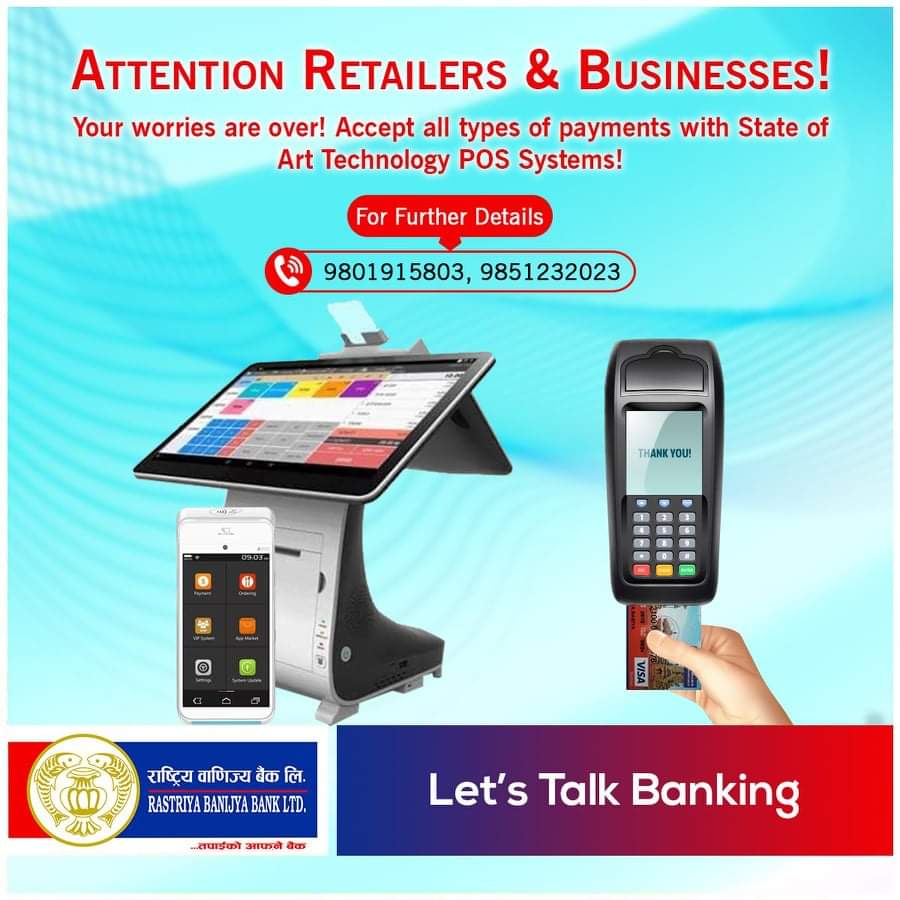 काठमाण्डु - राष्ट्रिय वाणिज्य बैक लिमिटेडले ‘पोइन्ट अफ सेल’को कारोबारमा क्यास ब्याक अफर ल्याएको छ । आउँदो दशै, तिहार, छठ लगायतको पर्वलाई मध्यनजर गर्दै विद्युतीय कारोबारलाई प्रोत्साहन गर्न बैंकले ‘पोइन्ट अफ सेल’को माध्यमवाट प्रति कारोबार १,००० वा सो भन्दा बढीको कार्ड स्वीप गर्दा क्यास ब्याक हुने योजना ल्याएको हो । यो योजना आगामी २०७८ असोज…