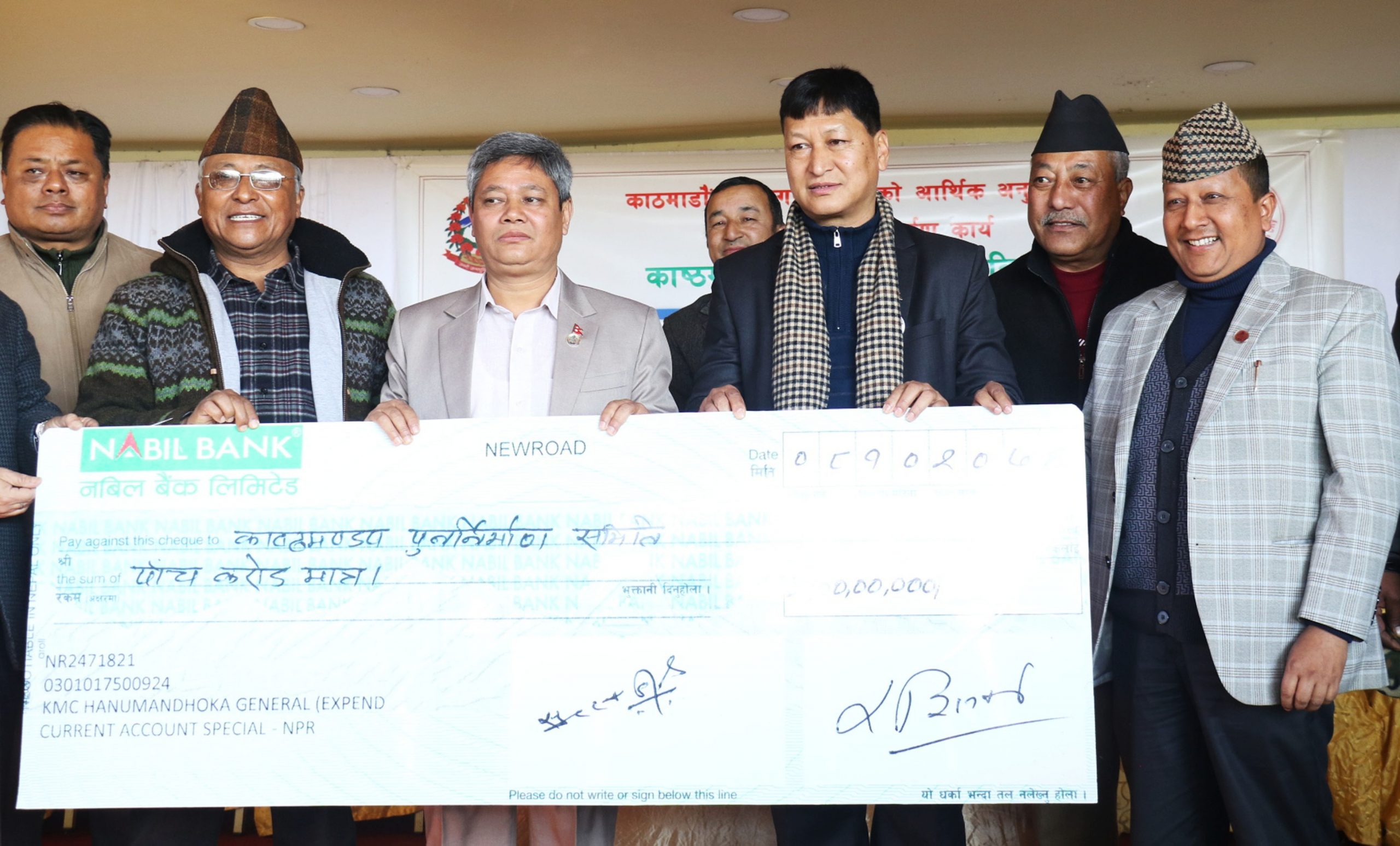 काठमाडौं – काठमाडौँ महानगरपालिकाले काष्ठमण्डप पुनःनिर्माणका लागि थप रु पाँच करोड प्रदान गरेको छ । यहाँ आज आयोजित कार्यक्रममा कामपा प्रमुख विद्यासुन्दर शाक्यले काष्ठमण्डप पुनःनिर्माण समितिका अध्यक्ष राजेश शाक्यलाई उक्त रकम बराबरको चेक हस्तान्तरण गरे । काष्ठमण्डपलाई छिटो, मौलिकस्वरुप र दिगो रुपमा पुनःनिर्माण गर्न प्रदेशसभा सदस्य राजेश शाक्य नेतृत्वको समिति र कामपाबीच सहमति भएपछि गत…