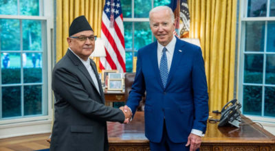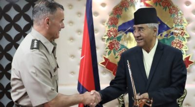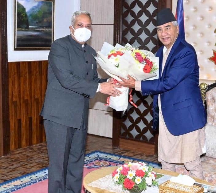 काठमाण्डु - प्रधानमन्त्री शेरबहादुर देउवासँग नेपालका लागि नवनियुक्त भारतीय राजदूत नवीन श्रीवास्तवले शिष्टाचार भेटवार्ता गरेका छन् । उनले बिहीबार प्रधानमन्त्री देउवासँग शिष्टाचार भेटवार्ता गरेका हुन् । त्यसघि श्रीवास्तवले आजै राष्ट्रपति विद्यादेवी भण्डारीसमक्ष आफ्नो ओहदाको प्रमाणपत्र बुझाएका थिए । निर्वतमान राजदूत विनय मोहन क्वात्रालाई भारत सरकारले विदेश सचिवमा नियुक्त गरेपछि श्रीवास्तवलाई नयाँ राजदूतको रुपमा पठाएको हो…