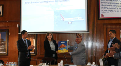 काठमाण्डु - राष्ट्रपति विद्यादेवी भण्डारीसमक्ष विभिन्न पाँच मुलुकबाट तोकिएका नेपालका लागि गैह्रआवासीय राजदूतहरूले आज आफ्नो ओहोदाको प्रमाणपत्र पेश गरेका छन् । राष्ट्रपति भवन शीतल निवासमा आयोजित छुट्टाछुट्टै विशेष समारोहमा नेपाल सरकारका उच्चपदस्थ अधिकारीको उपस्थितिमा उनीहरूले सो प्रमाणपत्र पेश गरेका हुन् । प्रमाणपत्र पेश गर्नेमा गैह्रआवासीय राजदूतहरु नाइजेरियका अहमेद सुले, इथोयोपियाका तिजिता मुलुगेटा मुकाङ्गिरा, लक्जमबर्गका पेगे फ्रान्टजेन,…