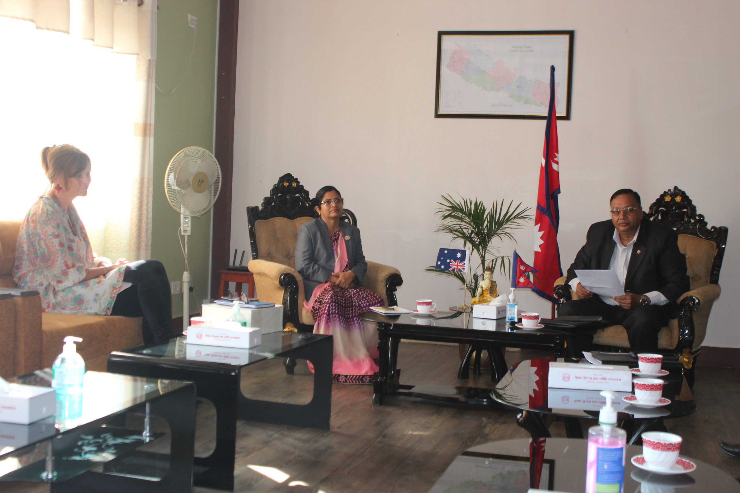 काठमाण्डु – शिक्षा, विज्ञान तथा प्रविधिमन्त्री देवेन्द्र पौडेल र नेपालका लागि अष्ट्रेलियन राजदूत फेलिसिटी जेन भोल्कबीच भेटवार्ता भएको छ । उनीहरुबीच भएको भेटवार्तामा नेपालको शैक्षिक विकासका विषयमा छलफल भएको छ । भेटवार्तामा मन्त्री पौडेलले सन् १९६० देखि द्विपक्षीय सम्बन्ध उत्कृष्ट र सुमधुर रहँदै आएको बताउँदै अष्ट्रेलिया सरकारले शैक्षिक छात्रवृत्तिको कोटा बढाउन आग्रह गरेका छन् ।…