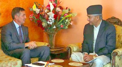 काठमाण्डु– प्रधानमन्त्री शेरबहादुर देउवालाई भारतीय राजदूत विनयमोहन क्वात्राले बधाई दिएका छन् । सर्वोच्च अदालतको परमादेशअनुसार राष्ट्रपति विद्यादेवी भण्डारीले देउवालाई प्रधानमन्त्रीमा नियुक्त गरेलगत्तै क्वात्राले भारत सरकारको तर्फबाट टेलिफोनमा बधाई दिएका हुन । देउवा निकट स्रोतले दिएको जानकारीअनुसार क्वात्राले आफ्नो व्यक्तिगत र भारत सरकारको तर्फबाट बधाई दिनुको साथै भारत सरकार नयां सरकारसंग मिलेर काम गर्न इच्छुक रहेको…