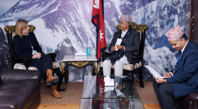 काठमाण्डु – परराष्ट्रमन्त्री प्रदीपकुमार ज्ञवाली र श्रीलंकका विदेशमन्त्री दीनेश गुणवार्डनाबीच टेलिफोनवार्ता भएको छ । आइतबार दुवै देशका विदेशमन्त्रीबीच टेलिफोनवार्ता भएको परराष्ट्र मन्त्रालयले जनाएको छ । वार्ताका क्रममा दुई देशबीचका पारस्परिक विषयहरूमा छलफल भएको मन्त्रालयका प्रवक्ता सेवा लम्सालले जानकारी दिइन् ।