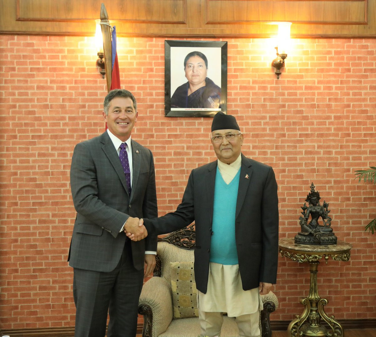 काठमाण्डु – नेपालका लागि अमेरिकी राजदूत र्याण्डी बेरीले प्रधानमन्त्री केपी शर्मा ओलीसँग भेटवार्ता गरेका छन् । बिहीबार प्रधानमन्त्री निवास बालुवाटारमा भेटवार्ता गरेको राजदूत बेरीले जनाएका छन् । अमेरिकी राष्ट्रपतिमा जो बाइडेनले पदभार ग्रहण गरेपछि राजदूत बेरीले प्रधानमन्त्री ओलीसँग समसामयिक विषयमा छलफल गरेका हुन् । उनले भेटमा राष्ट्रपति बाइडेन प्रशासनले नेपाल तथा अन्य राष्ट्रसँग साझेदारी गर्न…