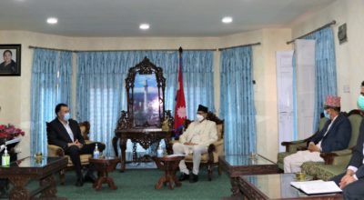 काठमाण्डु – प्रधानसेनापति पूर्णचन्द्र थापा र कतारका राजदूत युसुफ विन मोहम्मद अलहेलबीच भेटवार्ता भएको छ । सोमबार जंगी अड्डामा प्रधानसेनापति र राजदूतबीच शिष्टाचार भेटवार्ता भएको नेपाली सेनाले जनाएको छ । राजदूत र प्रधानसेनापति थापाबीच दुई पक्षीय आपसी हित तथा पारस्परिक सम्बन्धका विषयमा छलफल भएको छ । सेनाले यस किसिमको भेटवार्ताले दुई देश बीचको आपसी सौहार्दपूर्ण…