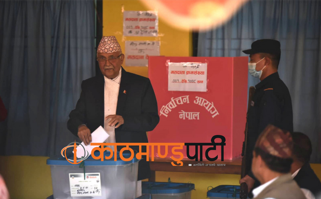 काठमाण्डु - नेकपा एमालेका अध्यक्ष केपी शर्मा ओलीले मतदान गरेका छन् । ओलीले केहीबेरअघि भक्तपुर नगरपालिका–२ बालकोटस्थित महेन्द्र शान्ति माविको मतदान केन्द्रमा पुगेर मतदान गरेका हुन् । उनले मतदानपछि सञ्चारकर्मीहरूसँग कुरा गर्दै निर्वाचनका क्रममा पाँचदलीय सत्ता गठबन्धनबाट कतिपय ठाउँमा आक्रमण भइरहेको बताए । 'याे चुनावमा बडो उत्साहका साथ सहभागिता रहेको छ । अत्यन्तै राम्रो उत्साह…