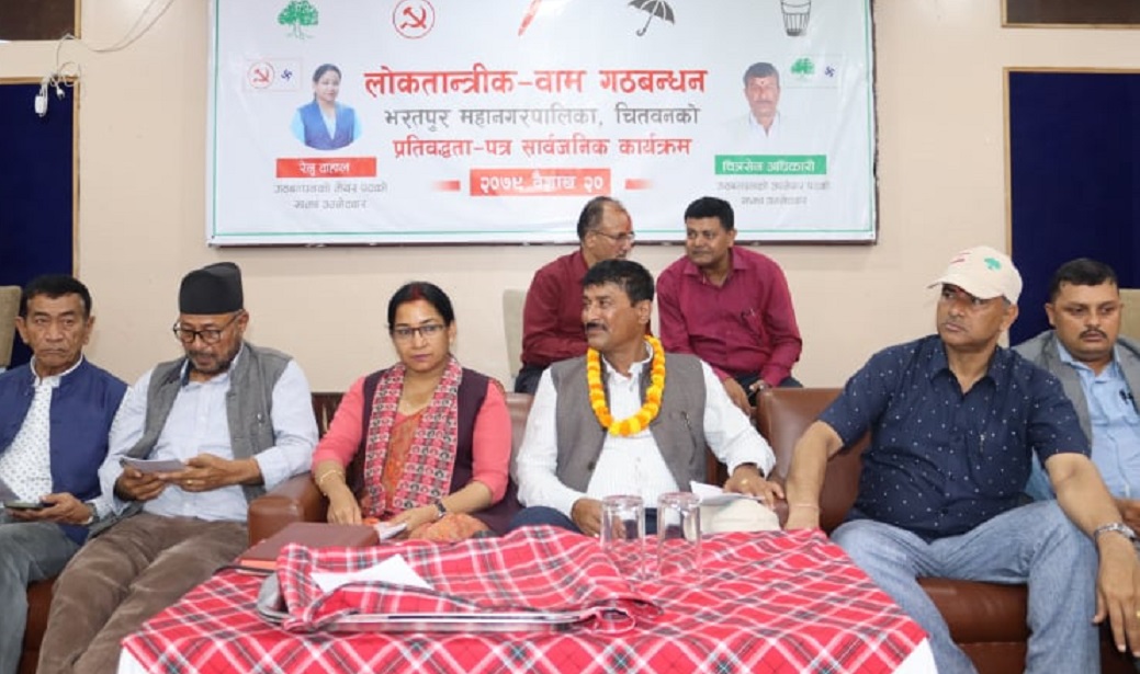 चितवन - चितवनको भरतपुर महानगरपालिकामा सत्ता गठबन्धनले चुनावी प्रतिबद्धता पत्र सार्वजनिक गरेको छ । यहि ३० वैशाखमा हुन लागेको स्थानीय तहको निर्वाचनलाई लक्षित गरेर गठबन्धनले मंगलबार प्रतिबद्धता पत्र सार्वजनिक गरेको हो । भरतपुर महानगरपालिकाको मेयरमा नेकपा (माओवादी केन्द्र)की रेनु दाहाल र उपमेयरमा नेपाली कांग्रेसका चित्रसेन अधिकारीले उमेदवारी दिएका छन् । उनीहरुले भरतपुरमा एक कार्यक्रमका बीच…