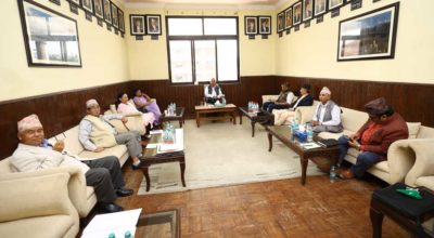 काठमाण्डु – पाँच दलीय सत्ता गठबन्धनबीच स्थानीय तह निर्वाचनका लागि उम्मेदवारको टुंगो लगाउन बैठक बसिरहेको छ । प्रधानमन्त्री निवास बालुवाटारमा जारी बैठकले महानगर र उपमहानगरलगायतका स्थानमा भागबण्डाको टुंगो लगाउने छ । हिजो (आइतबार) राति गठबन्धनको निर्वाचन तयारी तथा अनुगमन समितिले तयार पारेको ड्राफ्ट अहिले बिहान बालुवाटारको शीर्ष नेताको बैठकमा पेस गरिएको छ । जसमा गठबन्धन…
