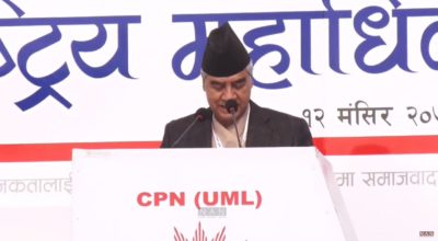 काठमाण्डु – नारायणी नदि किनारमा दशौं महाधिवेशन सत्र सकेर फर्किने क्रममा नेकपा एमालेका अध्यक्ष केपी शर्मा ओली जाममा फसेका छन् ।महाधिवेशन उद्घाटन स्थल नारायणी नदी किनारबाट होटल फर्किनेक्रममा उनी टिकौलीमा जाममा फसेका छन् । कार्यक्रम सकिएपछि महाधिवेशनमा सहभागि नेता कार्यकर्ताहरू कार्यक्रम स्थलबाट एकैपटक बाहिरिन खोज्दा अत्यधिक भिड् बढेपछि नेता तथा सर्वसाधारणलाई फर्किन सकस परेको छ…