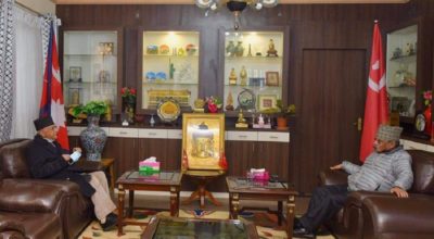 काठमाण्डु – सत्तारुढ दल नेपाल कम्युनिस्ट पार्टी (नेकपा) का कार्यकारी अध्यक्ष पुष्पकमल दाहाल ‘प्रचण्ड’ प्रधानमन्त्री केपी शर्मा ओलीलाई भेट्न बालुवाटार पुगेका छन् । पाटीभित्रको आन्तरिक विवाद उत्कर्षमा पुगेका बेला आज बस्न लागेको स्थायी समिति बैठकअघि प्रचण्ड प्रधानमन्त्री निवास पुगेका हुन् । अहिले ओली र प्रचण्डबीच बालुवाटारमा छलफल भइरहेको बताइएको छ । यसअघि शनिबार प्रधानमन्त्री ओली…