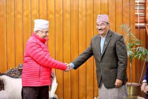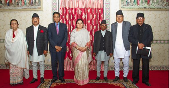 काठमडौं – राष्ट्रपति विद्यादेवी भण्डारीसँग प्रदेश नं १, प्रदेश नं २, प्रदेश नं ३, गण्डकी प्रदेश, प्रदेश नं ५ र कर्णाली प्रदेशका प्रदेश प्रमुखले बुधबार अपराह्न शीतल निवासमा सामूहिक शिष्टाचार भेटवार्ता गरेका छन् । त्यसअवसरमा प्रदेश प्रमुखले हालसम्म सम्पादन गरेका कार्यका बारेमा जानकारी दिनुका साथै आआफ्ना अनुभव सुनाएको राष्ट्रपतिको कार्यालयले जनाएको छ ।