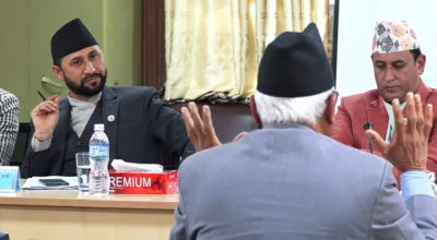काठमाण्डु- प्रधानमन्त्री पुष्पकमल दाहाल प्रचण्ड र नेपाली कांग्रेसका सभापति शेरबहादुर देउवाबीच भेटवार्ता भएको छ। नयाँ गठबन्धन बनेपछि प्रचण्डलाई भेट्न देउवा पहिलोपटक बिहीसवार बालुवाटार पुगेका हुन्। बालुवाटारमा उनीहरुबीच संसदलाई नियमित चलाउने र विचाराधीन कानुनहरू पारित गर्ने विषयमा छलफल भएको छ । साथै संक्रमणकालीन न्यायलाई टुंगो लगाउने विषयमा पनि दुई नेताबचि छलफल भएको जनाइएको छ । माओवादी…