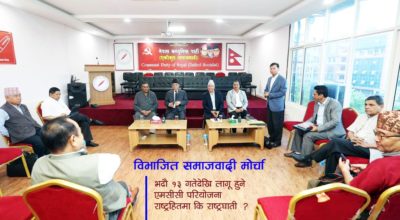 काठमाण्डु- संसदको गतिरोध अन्त्यका लागि दलहरुबीच दुईबुँदे सहमति भएको छ । बुधबार सिंहदरबारस्थित प्रधानमन्त्रीको कार्यालयमा बसेको बैठकमा संसदको गतिरोध अन्त्यका लागि दुईबुँदे सहमति जुटेको हो । बैठकमा नेपाली कांग्रेस, नेकपा एमाले, माओवादी केन्द्र, राष्ट्रिय स्वतन्त्र पार्टी, राप्रपा र जनता समाजवादी पार्टीका नेताहरु उपस्थित थिए । उच्चस्तरीय आयोग गठनको माग गर्दै एमालेले १० साउनदेखि संसद बैठक…