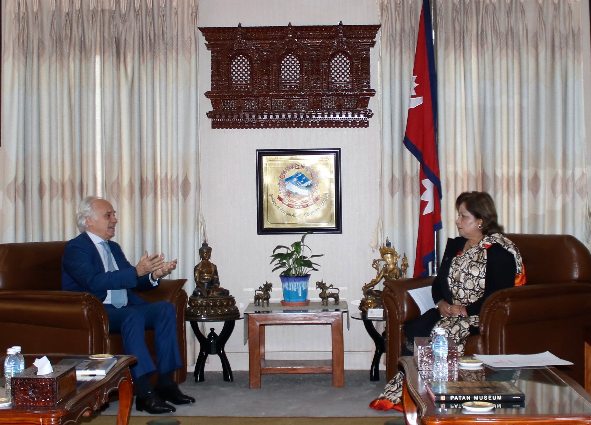 काठमाण्डु – परराष्ट्रमन्त्री डा. आरजु राणा देउवा र नेपालका लागि स्पेनका गैरआवासीय राजदूत जुआन एन्टोनियो मार्च पुजोलबीच भेटवार्ता भएको छ । शुक्रबार भएको भेटमा नेपाल–स्पेन सम्बन्ध र पर्यटन क्षेत्रमा द्विपक्षीय सहयोगका विषयमा छलफल भएको परराष्ट्रमन्त्री देउवाले सामाजिक सञ्जाल फेसबूकमार्फत जनाएकी छन् ।