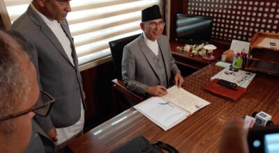 काठमाण्डु – नवनियुक्त प्रधानमन्त्री केपी शर्मा ओलीले नेपाल कम्युनिष्ट पार्टीका ३ शीर्ष नेताको तस्वीरमा माल्यार्पण गरेका छन् । राष्ट्रपति कार्यालयमा पद तथा गोपनीयताको शपथ लिएपछि ललितपुरको च्यासलस्थित नेकपा एमालेको केन्द्रीय कार्यालय पुगेर उनले नेपाल कम्युनिष्ट पार्टीका संस्थापक नेता पुष्पलाल श्रेष्ठ, एमालेका पूर्व अध्यक्ष मनमोहन अधिकारी तथा पार्टीका तत्कालीन महासचिव मदन भण्डारीको तस्वीरमा माल्यार्पण गरेका छन्…