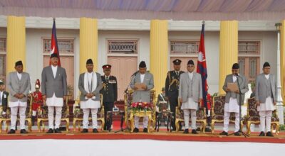 काठमाण्डु – आज राष्ट्रपति रामचन्द्र पौडेलसमक्ष प्रधानमन्त्रीको पद तथा गोपनियताको शपथ लिएका एमाले अध्यक्ष केपी शर्माओलीले दुई उपप्रधानमन्त्रीसहित २२ सदस्यीय मन्त्रिपरिषद् गठन गरेका छन् । उपप्रधानमन्त्री र मन्त्रीहरूले पनि आजै पद तथा गोपनियताको शपथ लिएका छन् । तर, ओलीले आफूले पद तथा गोपनियताको शपथ लिएकै दिन संविधान अनुरुप बनाउन पाउने २५ सदस्यीय मन्त्रिपरिषद्मा २२ जना…