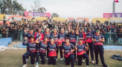 काठमाण्डु- आइसिसी महिला टि–२० विश्वकप छनोट अन्तर्गत समूह चरणको अन्तिम खेलमा स्कटल्यान्डले नेपाललाई जितका लागि १४१ रनको लक्ष्य दिएको छ। त्रिवि क्रिकेट मैदानमा सोमबार टस हारेर ब्याटिङको निम्तो पाएको स्कटल्यान्डले निर्धारित २० ओभरमा अलआउट हुँदै १४० रन बनाएको छ । स्कटल्यान्डका लागि प्रियानाज चटर्जीले सर्वाधिक ४५ रन बनाइन्। नेपालका लागि मनिषा उपाध्यायले ४ विकेट लिइन्…